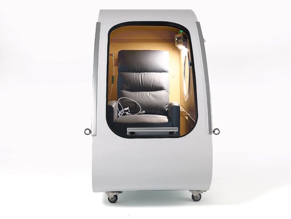Our hyperbaric chamber utilizes an oxygen concentrator that will increase the oxygen content around your body to 30% with oxygen being delivered to your lungs at 95% at 2.0 ATM. This concentrator also enhances the air with anionization, cooling and dehumidification. We typically see 100% oxygen saturation in our patients. Secondly, our chamber has open windows above your head and below your feet and a huge window directly above your face to enhance your comfort and anxiety.